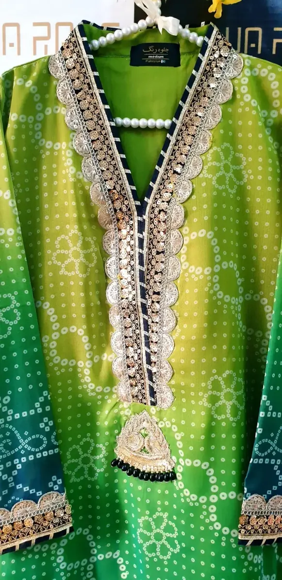 Embroidered Laced Neckline with Embellishment