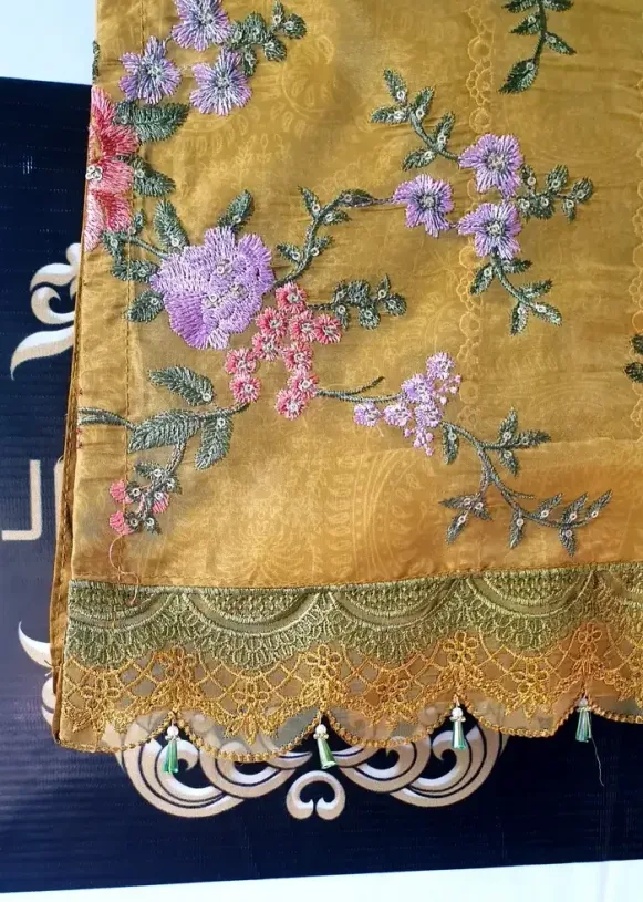 Embroidered Organza Daman with tassels